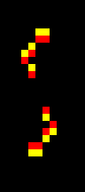 Add a red cell and a yellow cell to the glider.